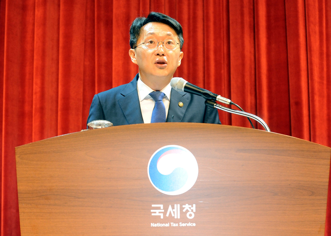 (조세금융신문=김용진 기자)12일 오전 정부세종청사 국세청에서 열린 전국세무관서장회의에서 김현준 국세청장이 발언하고 있다.