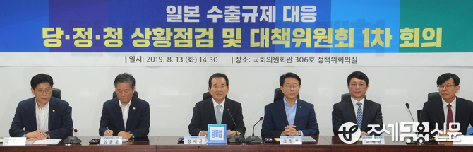 (조세금융신문=김용진 기자)정세균 더불어민주당 위원장이 13일 오후 국회 의원회관에서 열린 일본 수출규제 대응 당,정,청 상황점검 및 대책위원회 1차 회의에서 발언을 하고 있다.