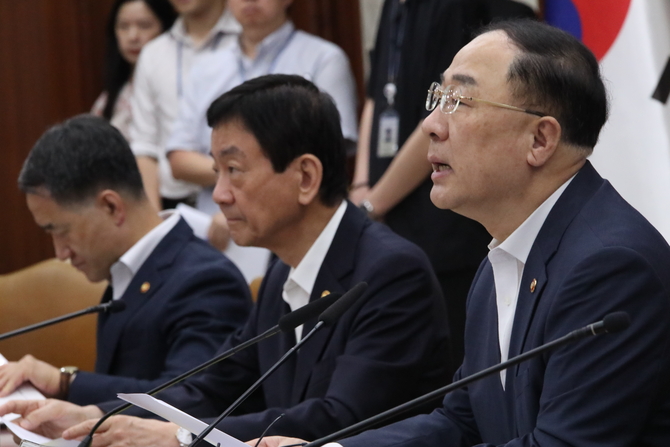 이밖에 홍 부총리는 "일본의 경제적 보복 조치로 불확실성이 많이 늘어난 데다 양국 간 교역도 위축 양상을 보일 우려가 크다"며 "일본 정부는 부당한 수출제한조치를 원 상태로 철회할 것을 다시 한번 촉구한다"고 말했다.