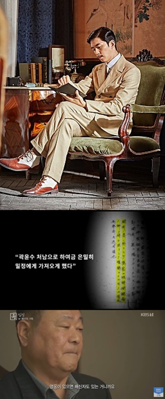 곽윤수 선생 손자는 '밀정'을 통해 "역사적 관점에서 보면 속상할 필요가 없다"며 "어느 시대나 좋은 사람과 나쁜 사람은 공존하기 마련이다. 영웅이 있으면 배신자도 있는 거다"라며 담담한 모습을 보이기도 했다.