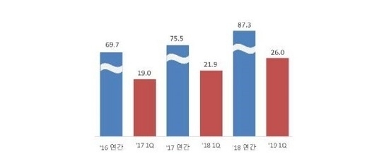 2018년 1∼3분기에 전년 대비 각각 4.7%, 17.1%, 4.7% 증가율을 보인 것과 차이가 크다.