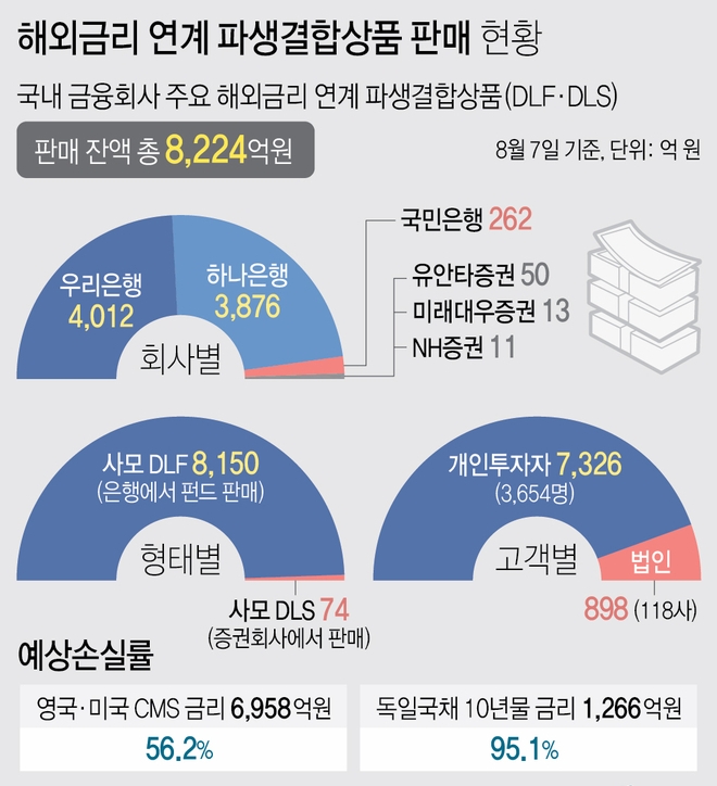 현재 영국·미국의 파운드·달러화 이자율스와프(CMS)에 연동된 DLF 상품 판매 잔액은 6958억원으로 이 중 85.8%인 5973억원이 손실구간에 진입한 상태다.