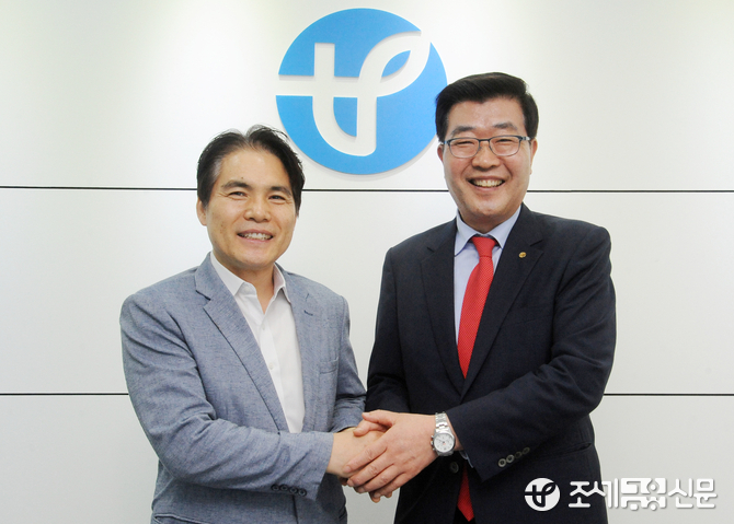 (조세금융신문=김용진 기자) 김종상 조세금융신문 대표가 20일 오후 조세금융신문을 방문한 원경희 한국세무사회 회장과 손을 맞 잡고 있다.