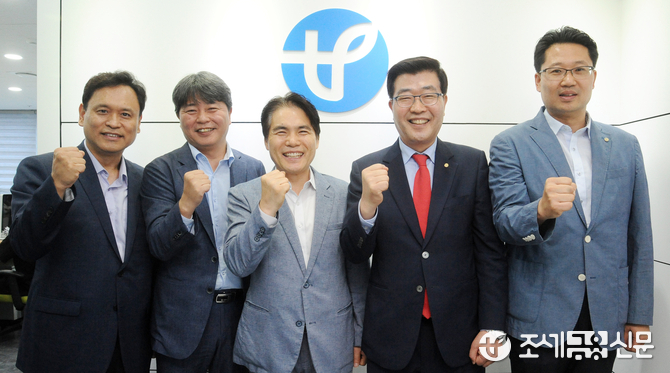 (조세금융신문=김용진 기자) 20일 오후 조세금융신문을 방문한 원경희 한국세무사회 회장(우측에서 두번째)와 김종상 조세금융신문 대표(가운데)가 조세업계의 발전을 위한 환담을 마치고 기념촬영하고 있다.