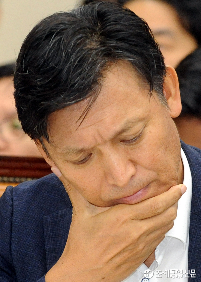 (조세금융신문=김용진 기자)김영문 관세청장이 22일 오전 국회에서 열린 기획재정위원회 전체회의에서 얼굴을 만지며 생각을 하고 있다.