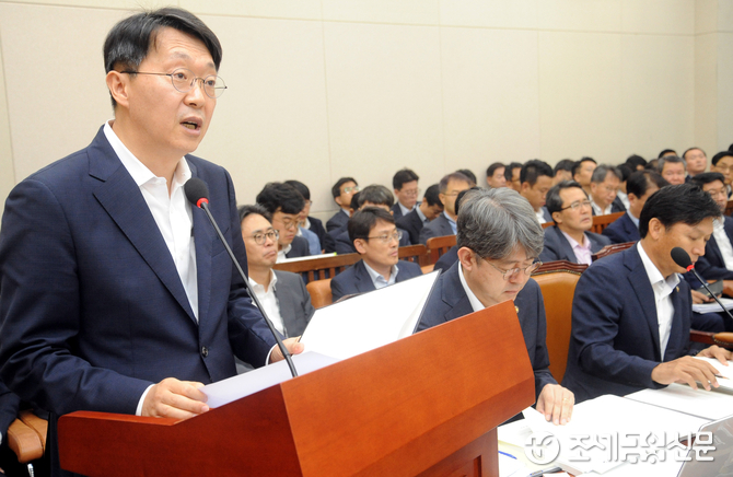 (조세금융신문=김용진 기자)김현준 국세청장이 22일 오전 국회에서 열린 기획재정위원회 전체회의에서 업무 보고를 하고 있다.