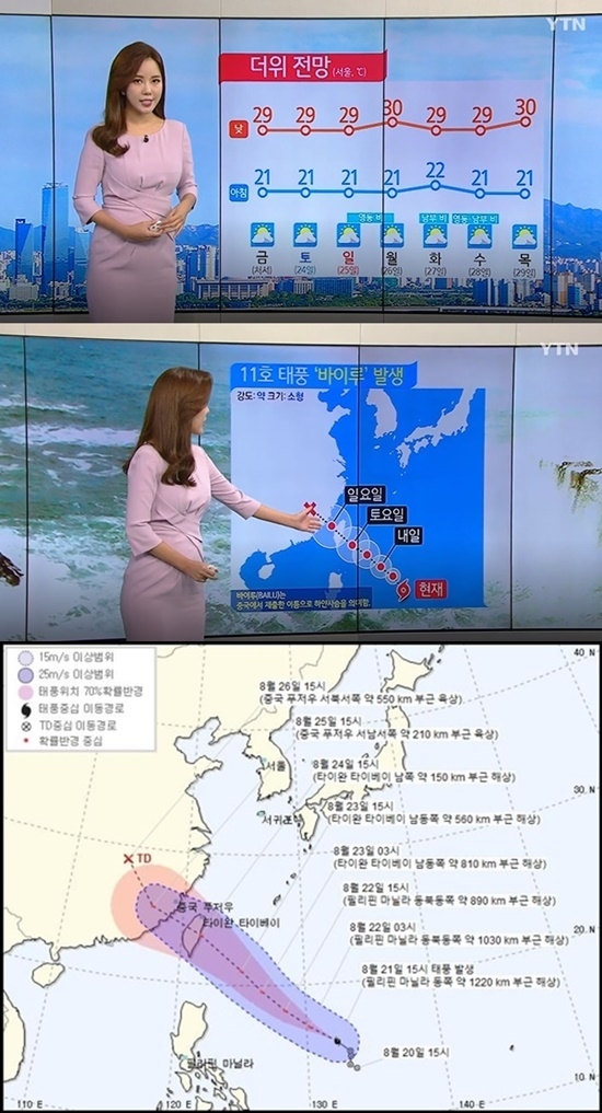 (조세금융신문=김효진 기자) 오늘 날씨가 흐린 가운데 2019년 제 11호 태풍 '바이루'가 발생했다.
