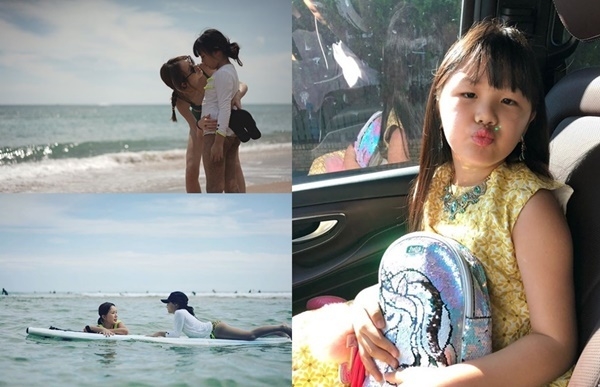 훌쩍 자란 엄지온 양은 바다 한 가운데 떠 있는 패들 보드 위에서 이모인 엄정화와 대화를 나누고 있다.