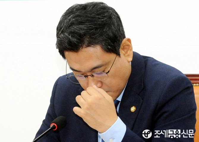 (조세금융신문=김용진 기자)오신환 바른미래당 원내대표가 3일 오전 국회에서 열린 원내대책회의에서 얼굴을 만지며 생각을 하고 있다.