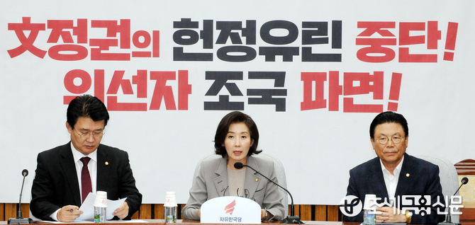 (조세금융신문=김용진 기자) 나경원 자유한국당 원내대표가 20일 오전 국회에서 열린 원내대책회의 모두 발언에서 "이번 정기국회 국정감사는 권력형 비리 진상규명 국감이 될 수밖에 없다"고 말하고 있다.