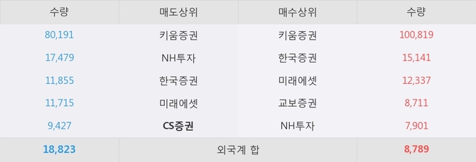 거래원 동향은 미래에셋, NH투자 등이 매수 상위 목록에 나타나고 있다. 한편, 매도 창구 상위에는 CS증권이 눈에 띄고 있다.