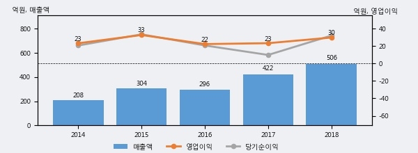 최근 실적을 살펴보면 2018년 매출액이 최근 5년 중 가장 높은 실적을 기록했음을 알 수 있다. 이전 최고 실적이었던 2017년 보다도 20.1%(84억 8천만원) 늘어난 것으로 나타났다.