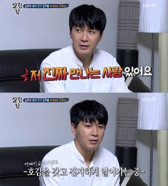 김승현은 최근 KBS 2TV '살림하는 남자들2'에서 공연장을 찾아 여자친구의 존재를 알고 싶어하는 부모님에게 교제 중인 여성이 있음을 알렸다.