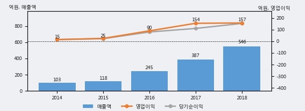 최근 3년간의 실적을 살펴보면 안정적 성장세를 보이고 있다. 최근 3년간 매출로 볼 때 매년 꾸준히 증가하고 있다. 다만 최근에 그 증가폭이 다소 감소하고 있다.