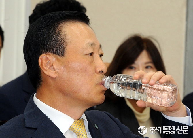 (조세금융신문=김용진 기자) 김도진 중소기업은행장이 14일 오전 국회에서 열린 정무위원회 국정감사에서 물을 마시고 있다.