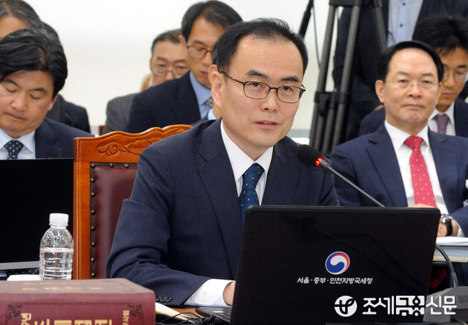 (조세금융신문=김용진 기자) 최정욱 인천지방국세청장이 15일 오전 서울지방국세청에서 열린 서울,중부, 인천지방국세청 국정감사에서 여야 의원들의 질의에 답 하고 있다.