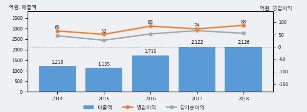 최근 3년간의 실적을 살펴보면 안정적 성장세를 보이고 있다. 최근 3년간 매출로 볼 때 매년 증가하고 있다. 다만 최근에 그 증가폭이 다소 감소하고 있다.