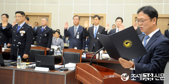 (조세금융신문=김용진 기자) 이동신 부산지방국세청장이 17일 오후 부산본부세관 열린 부산지방국세청, 부산본부세관 국정감사에서 선서를 하고 있다.