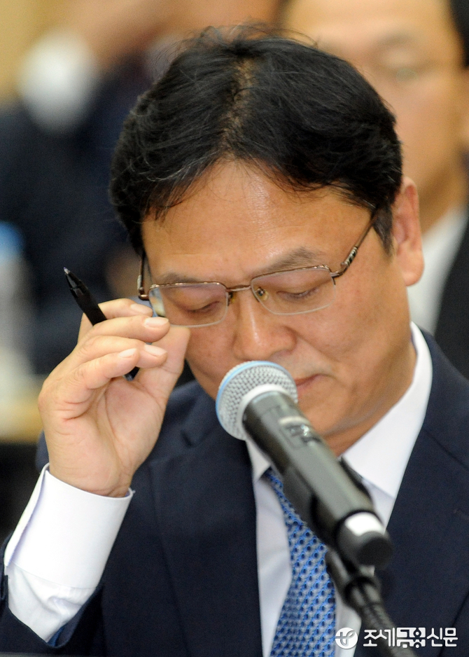 (조세금융신문=김용진 기자) 이동신 부산지방국세청장이 17일 오후 부산본부세관 열린 부산지방국세청, 부산본부세관 국정감사에서 생각을 하고 있다.