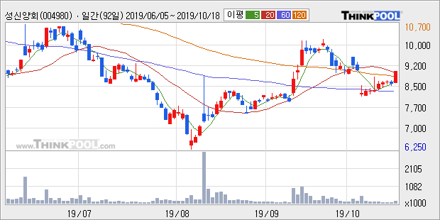 성신양회는 2018년 매출액 6881억원과 영업이익 298억원을 기록했다. 전년대비 매출은 6.3% 상승했고, 영업이익은 -9.2% 하락했다. 이 회사의 매출액 증감률과 영업이익 증감률은 각각 코스피 상위 40%, 하위 47%에 해당된다.