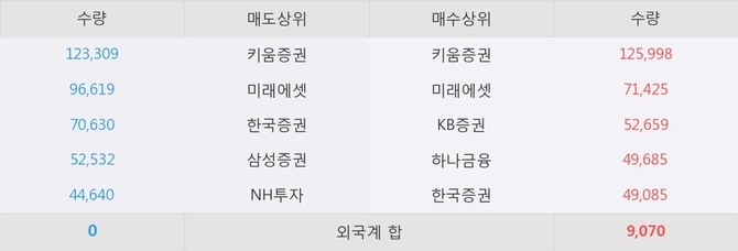 거래원 동향은 미래에셋, 하나금융 등이 매수 상위 목록에 나타나고 있다.