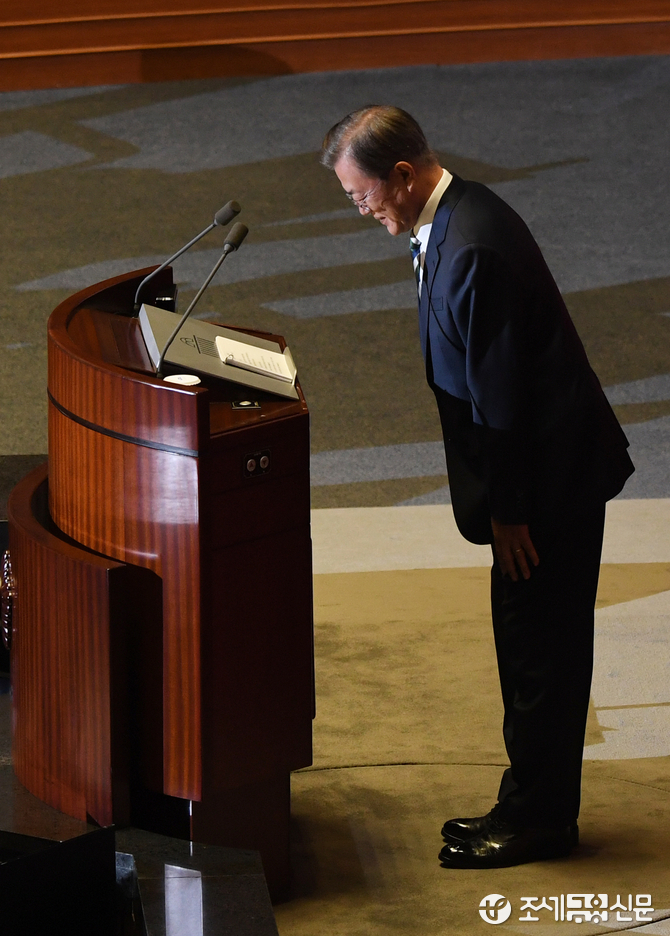 (조세금융신문=김용진 기자) 문재인 대통령이 22일 오전 국회 본회의장에서 내년도 예산안에 대한 시정연설에서 인사하고 있다.(국회사진취재단제공)