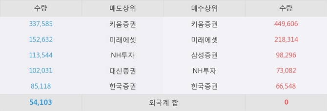 거래원 동향은 미래에셋, 삼성증권, NH투자 등이 매수 상위 목록에 나타나고 있다.