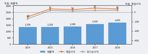 최근 3년간의 실적을 살펴보면 안정적 성장세를 보이고 있다. 최근 3년간 매출로 볼 때 매년 꾸준히 증가하고 있다. 다만 최근에 그 증가폭이 다소 감소하고 있다.