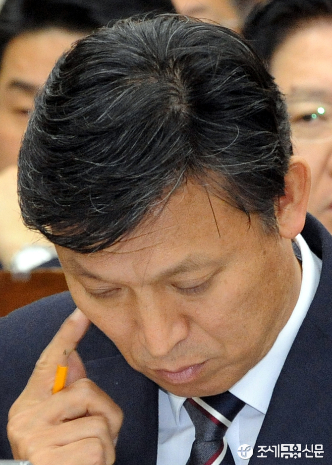 (조세금융신문=김용진 기자) 김영문 관세청장이 23일 오전 국회에서 국회 기획재정위원회에서 열린 관세청 대한 종합 국정감사에서 의원 질의를 들으며 생각을 하고 있다.