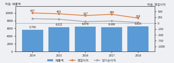 최근 실적을 살펴보면 2018년 매출액이 최근 5년 중 가장 높은 실적을 기록했음을 알 수 있다. 이전 최고 실적이었던 2016년 보다도 0.8%(48억 8천만원) 늘어난 것으로 나타났다.