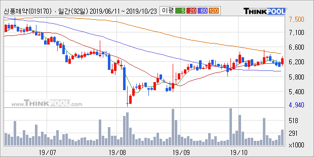 신풍제약은 2018년 매출액 1874억원과 영업이익 69억원을 기록했다. 전년대비 매출은 1.3% 상승했고, 영업이익은 -23.5% 하락했다. 이 회사의 매출액 증감률과 영업이익 증감률은 각각 코스피 하위 42%, 하위 37%에 해당된다.