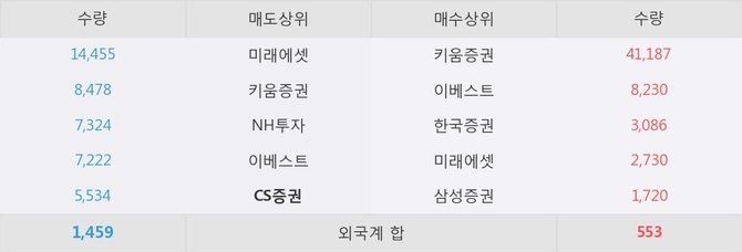 거래원 동향은 미래에셋, 삼성증권 등이 매수 상위 목록에 나타나고 있다. 한편, 매도 창구 상위에는 CS증권이 눈에 띄고 있다.