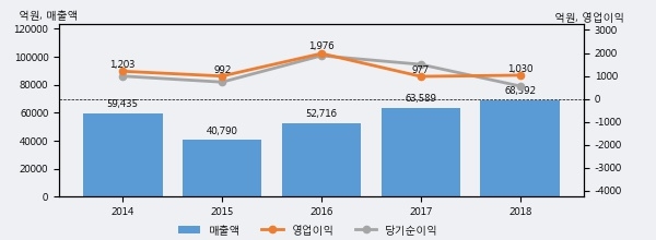 최근 3년간의 실적을 살펴보면 안정적 성장세를 보이고 있다. 최근 3년간 매출로 볼 때 매년 증가하고 있다. 다만 최근에 그 증가폭이 다소 감소하고 있다.