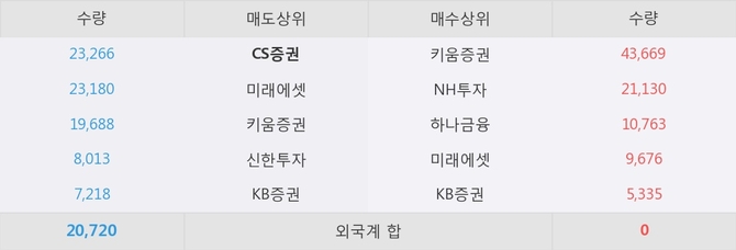 거래원 동향은 NH투자, 하나금융, 미래에셋 등이 매수 상위 목록에 나타나고 있다. 한편, 매도 창구 상위에는 CS증권이 눈에 띄고 있다.