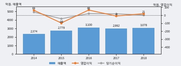 한일사료는 2018년 매출액 3078억원과 영업이익 21억원을 기록했다. 전년대비 매출은 2.9% 상승했고, 영업이익은 흑자전환했다. 이 회사의 매출액 증감률과 영업이익 증감률은 각각 코스닥 하위 48%, 상위 5%에 해당된다.