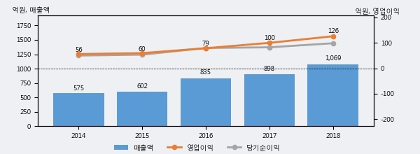 최근 3년간의 실적을 살펴보면 안정적 성장세를 보이고 있다. 최근 3년간 매출로 볼 때 매년 꾸준히 증가하고 있고 그 증가폭도 확대되고 있다.