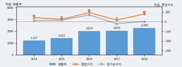 최근 3년간의 실적을 살펴보면 안정적 성장세를 보이고 있다. 최근 3년간 매출로 볼 때 매년 꾸준히 증가하고 있고 그 증가폭도 확대되고 있다.