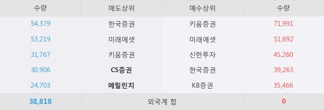 거래원 동향은 CS증권, 메릴린치, 미래에셋 등이 매도 상위 목록에 위치하고 있다.