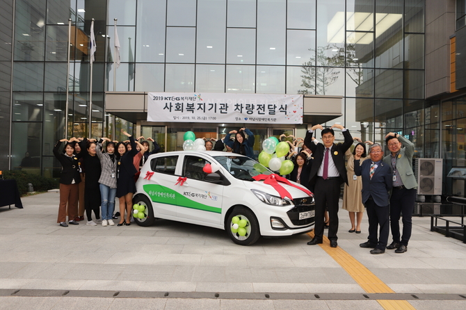 (조세금융신문=김소현 기자) KT&G 복지재단은 25일 경기도 하남시 장애인복지관에서 ‘2019 사회복지기관 차량 전달식’을 진행하고 전국 사회복지기관 100곳에 차량 100대를 지원했다.