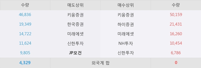 거래원 동향은 미래에셋, NH투자 등이 매수 상위 목록에 나타나고 있다. 한편, 매도 창구 상위에는 JP모건이 눈에 띄고 있다.