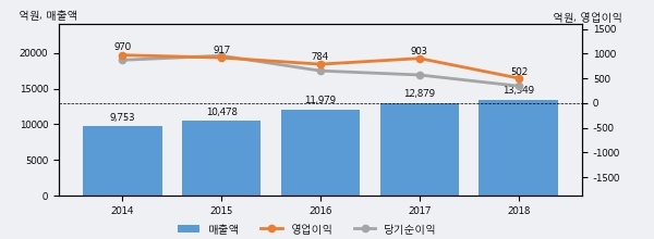 최근 3년간의 실적을 살펴보면 안정적 성장세를 보이고 있다. 최근 3년간 매출로 볼 때 매년 꾸준히 증가하고 있다. 다만 최근에 그 증가폭이 다소 감소하고 있다.