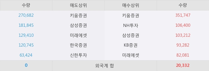거래원 동향은 NH투자, 삼성증권, 미래에셋 등이 매수 상위 목록에 나타나고 있다.
