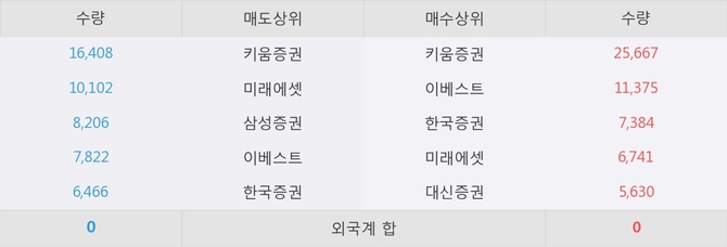 이 시각 주요 거래원은 미래에셋, 키움증권, 이베스트 등이 매수 상위 창구에 자리하고 있다.