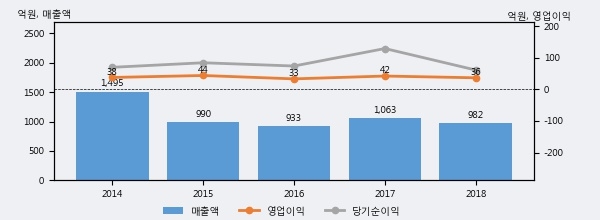 에이텍의 2018년 매출액은 전년대비 -7.6% 줄어든 982억원이고, 영업이익 역시 전년대비 -13.3% 줄어든 36억원을 기록했다. 이 회사의 매출액 증감률과 영업이익 증감률은 각각 코스닥 하위 27%, 하위 46%에 해당된다.