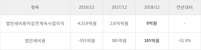 [표]한진칼 법인세 납부 추이