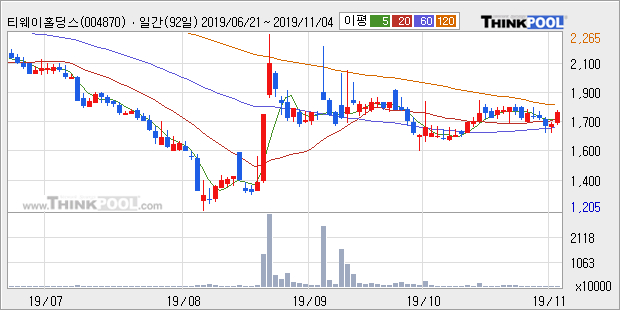 [그래프]티웨이홀딩스 일봉 차트