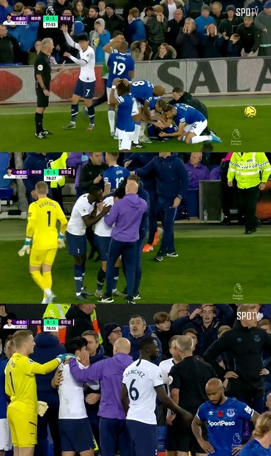 손흥민은 상대의 상태를 본 직후 두 손으로 얼굴을 움켜쥔 채 고통스러운 표정으로 눈물을 쏟아냈다.