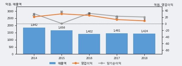 부국철강의 2018년 매출액은 1424억으로 전년대비 -2.6% 하락했고, 영업이익 역시 9억으로 전년대비 -29.2% 하락했다. 이 회사의 매출액 증감률과 영업이익 증감률은 각각 코스피 하위 27%, 하위 32%에 해당된다.