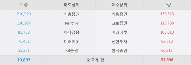 이 시각 주요 거래원은 미래에셋, 키움증권, 교보증권 등이 매수 상위 창구에 자리하고 있다.