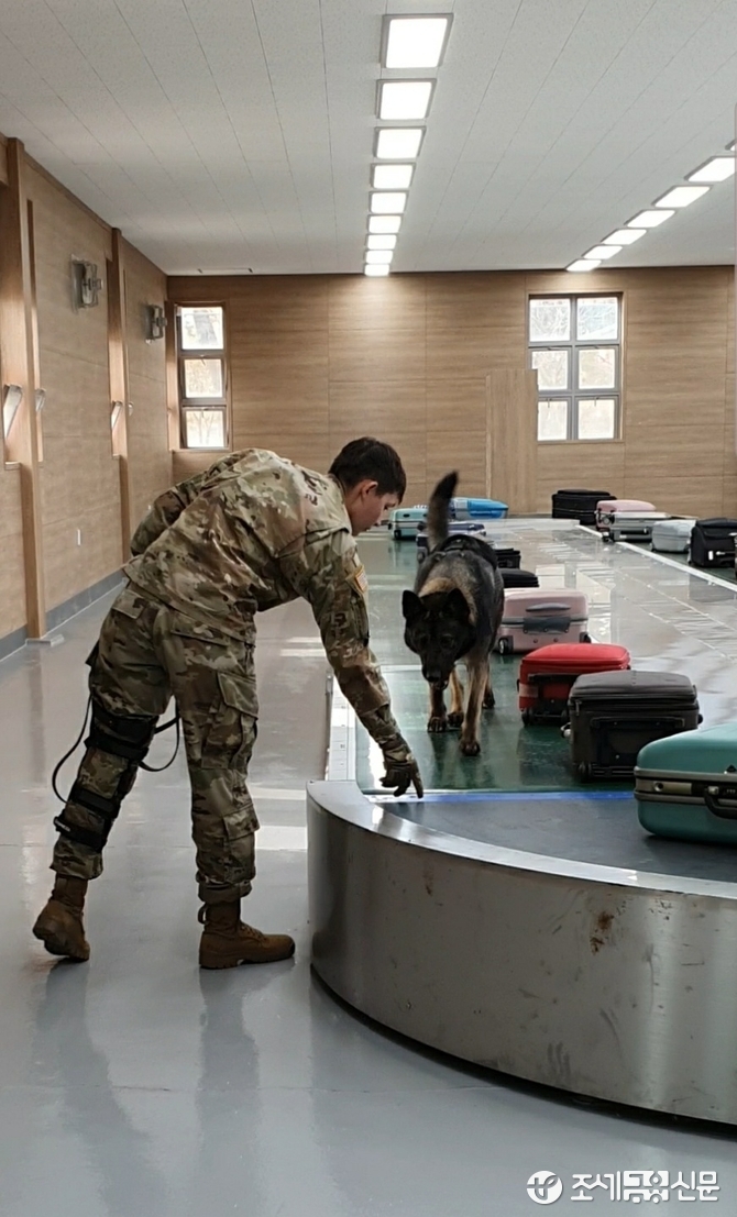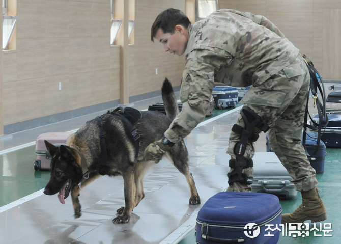 주한미군 소속의 핸들러 제시카 힌톤(Jessica Hinton)과 그의 탐지견 코라도(CORADO)가 나섰다. 리트리버나 스패니얼 종을 탐지견으로 선정하는 우리나라와 달리 미군은 주로 셰퍼드 종을 선정한다.